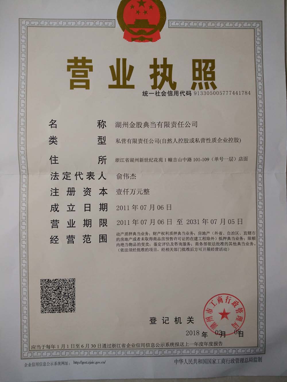 湖州(zhōu)金股典當有限(xiàn)責任公司(sī)