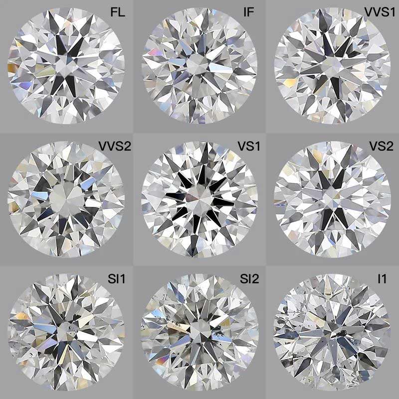 (鑽石淨度等級實物對比)